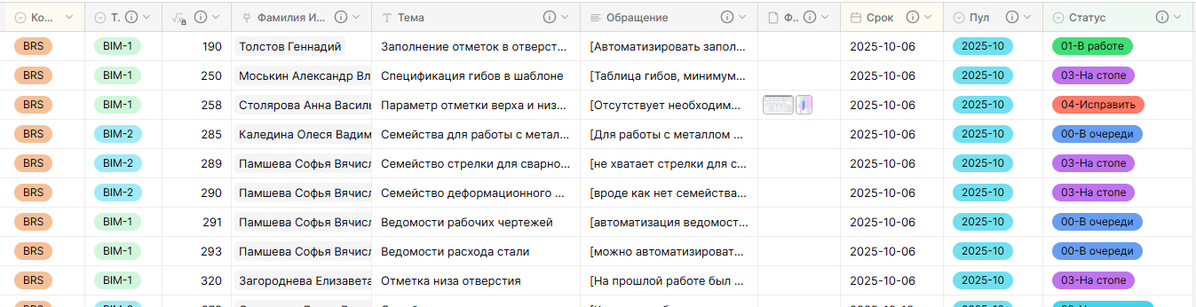 Компания клиент, в которой работает проектировщик, от которого пришло обращение В системе используются сокращения вида BRS / ART / ARN и |